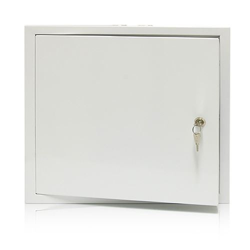 Montážní ochranná uzamykatelná skříň s montážní plotnou pro umístění technologie např. přístupového nebo kamerového systému s ventilací Skříň je vyrobena z pozinkovaného materiálu s ochranou proti zrezivění a s povrchovou úpravou bílé barvy. Po odstranění krytek lze získat otvory pro kabeláž na horní a spodní straně.