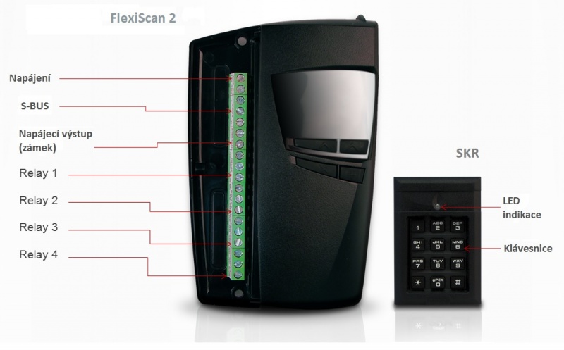 Systém se ovládá jednoduše pomocí 4 tlačítek. Do paměti kontroleru FlexiScan 2 lze uložit 99 RFID karet/PIN kódů/dálkových ovladačů. Pro připojení zařízení jako je čtečka, přijímač dálkových ovladačů a externí relé je využívána zabezpečená sběrnice S-BUS, která využívá moderní šifrovací metodu AES.